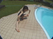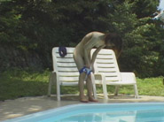 プール前で日光浴、干物は干す事で旨味成分を増やす様に勿論この娘もスク水で干すよ。食材は常にベストの状態にもっていくのが鉄則だよね。